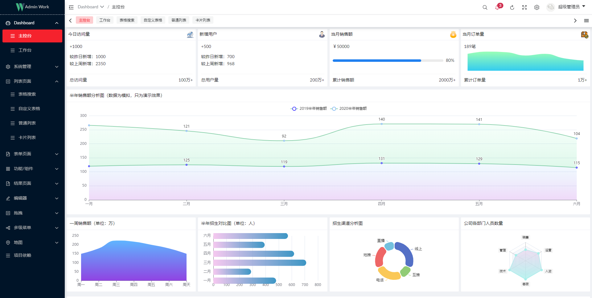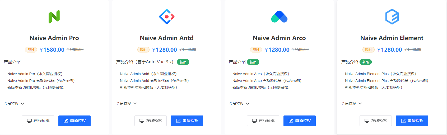 - 注重开箱即用的,这种方式基本上是在上面的两种框架的基础上,自己通过整合路由、权限和一些常用实现,同时对性能和美观方面进行优化的前端框架,比如 antd-admin, naive-ui-admin, vue-admin-better 等;