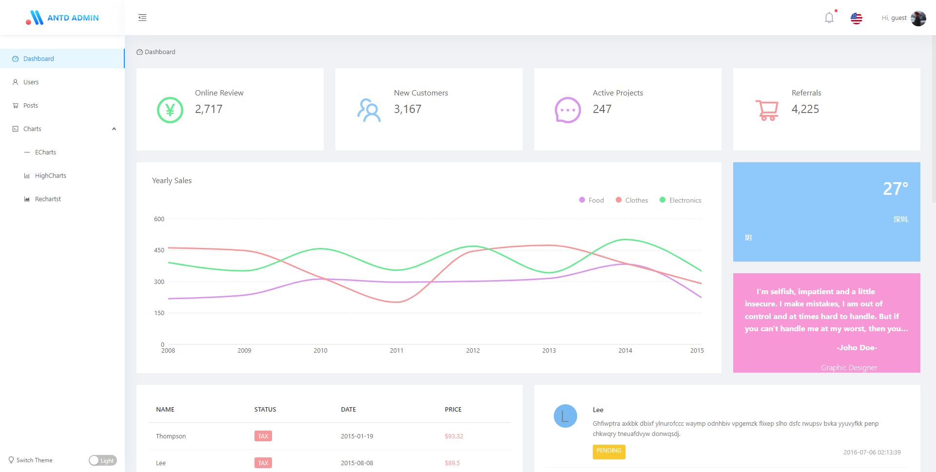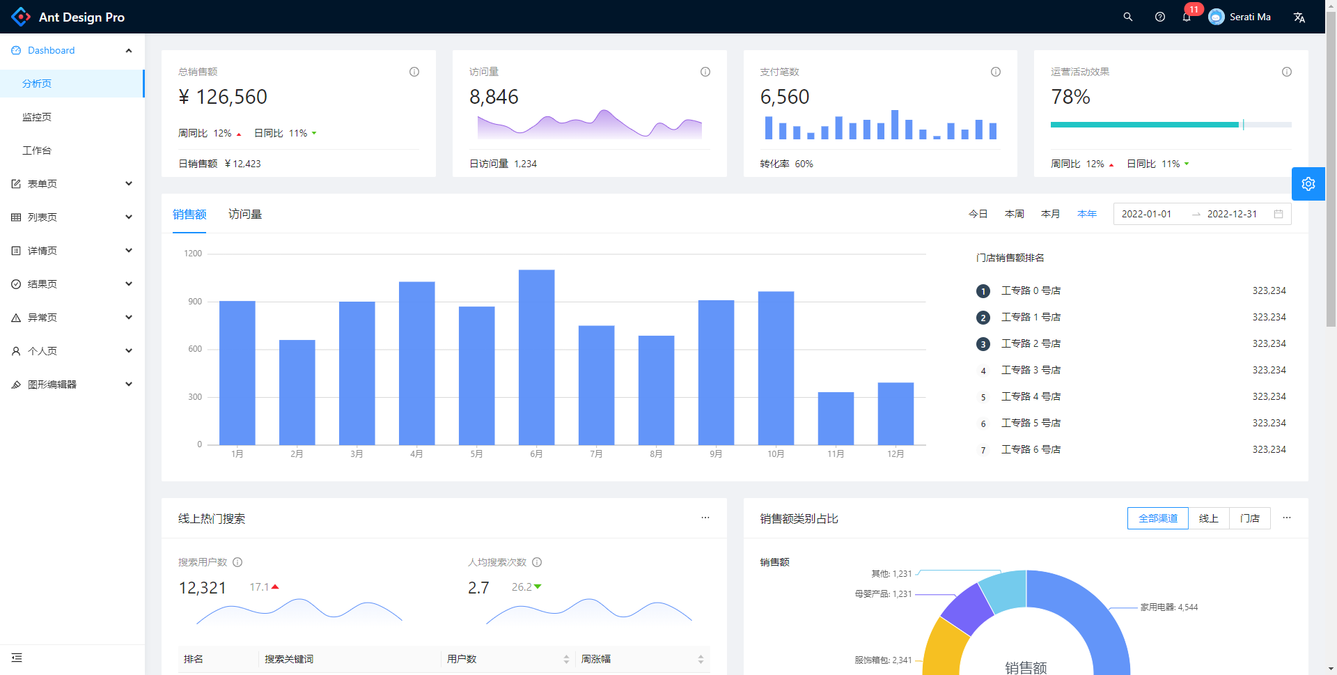项目地址:zuiidea/antd-admin: An excellent front-end solution for enterprise applications built upon Ant Design and UmiJS (github.com)