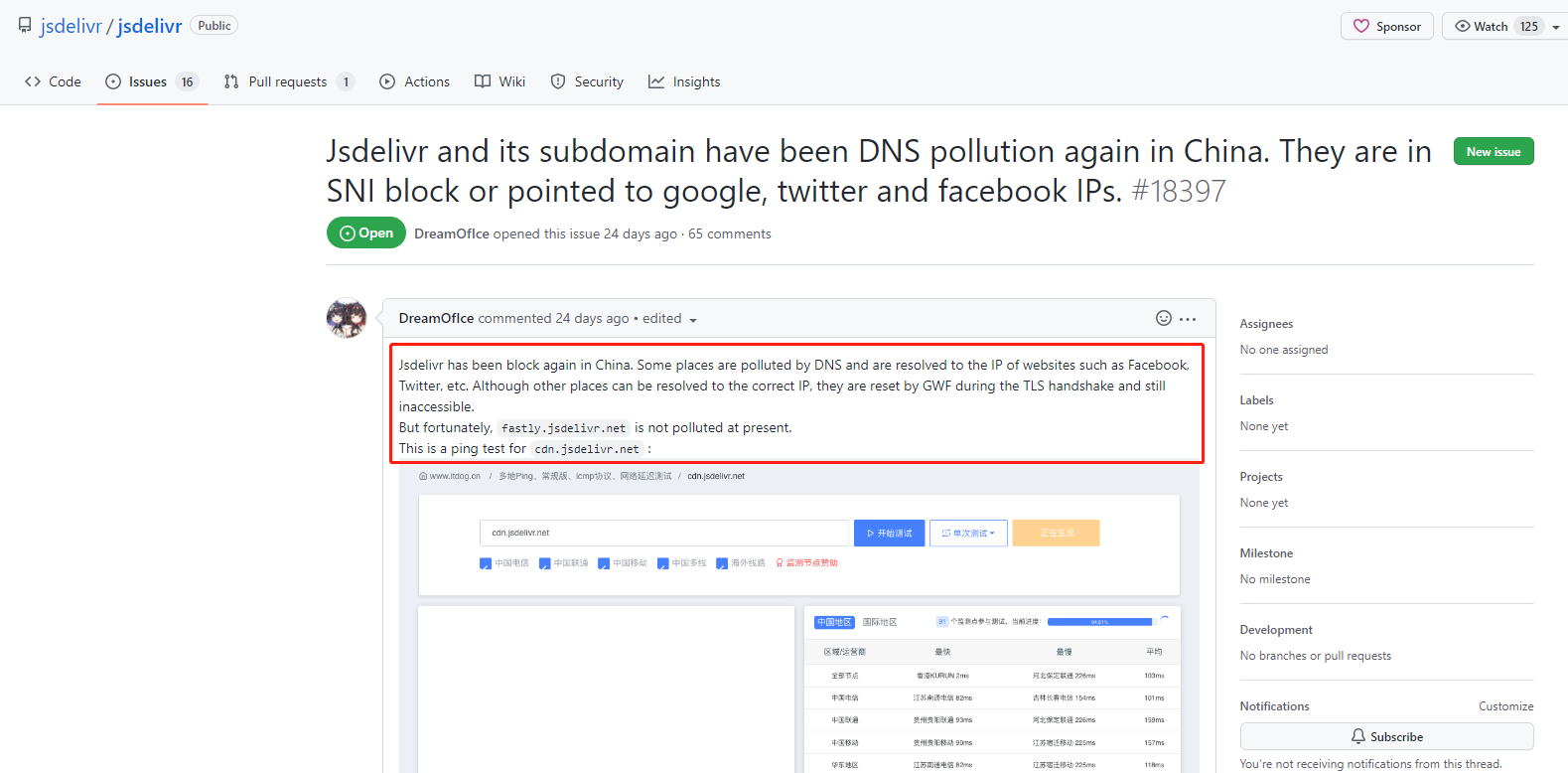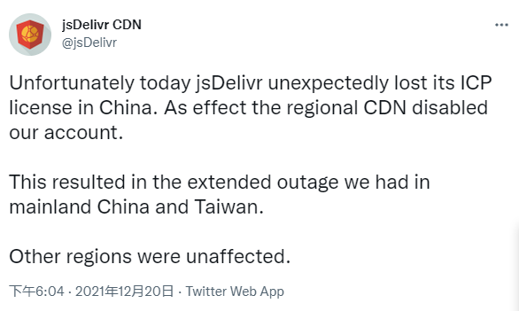 屁颠屁颠用 gihub+jsDelivr 加速做 js 文件 cdn 加速和图床之后,发现国内网络访问打开不到图片,原来 jsDelivr 在去年年底不能访问了,官方声明 Unfortunately today jsDelivr unexpectedly lost its ICP license in China.