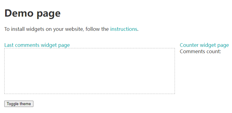 components: ['embed' | 'last-comments' | 'counter'] (optional, ['embed'] by default) – an array of widgets that should be rendered on a page. You may use more than one widget on a page. | |